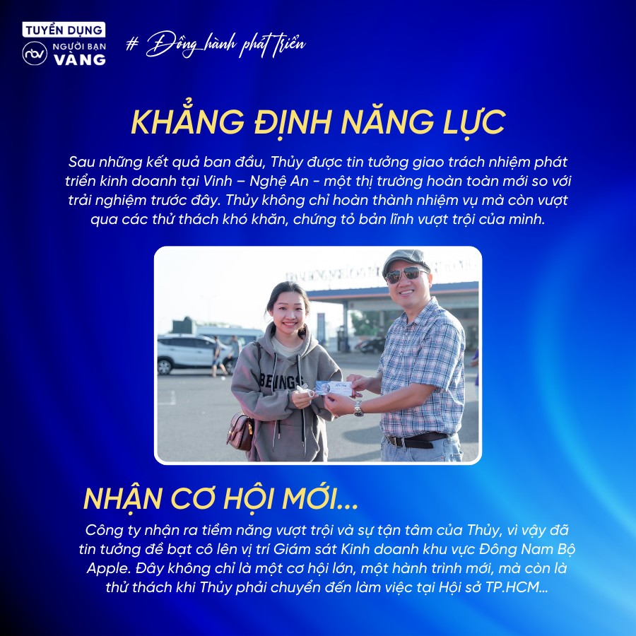 Trong bài viết này, chúng ta sẽ cùng khám phá câu chuyện về một nhân vật đặc biệt, một gương mặt mới tại Hội sở mà bạn có thể đã gặp gần đây. Đó chính là Hoàng Thị Thanh Thủy – Giám sát khu vực Đông Nam Bộ Apple, người đã thăng tiến từ vị trí Giao Dịch Viên tại cửa hàng. Nếu bạn đang tò mò về hành trình thăng tiến của một bạn Giao Dịch Viên, bài viết này chắc chắn sẽ mang lại cho bạn nhiều góc nhìn thú vị. Let’s go!