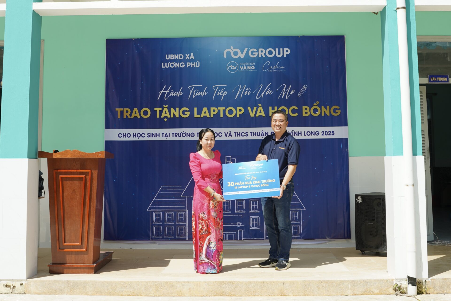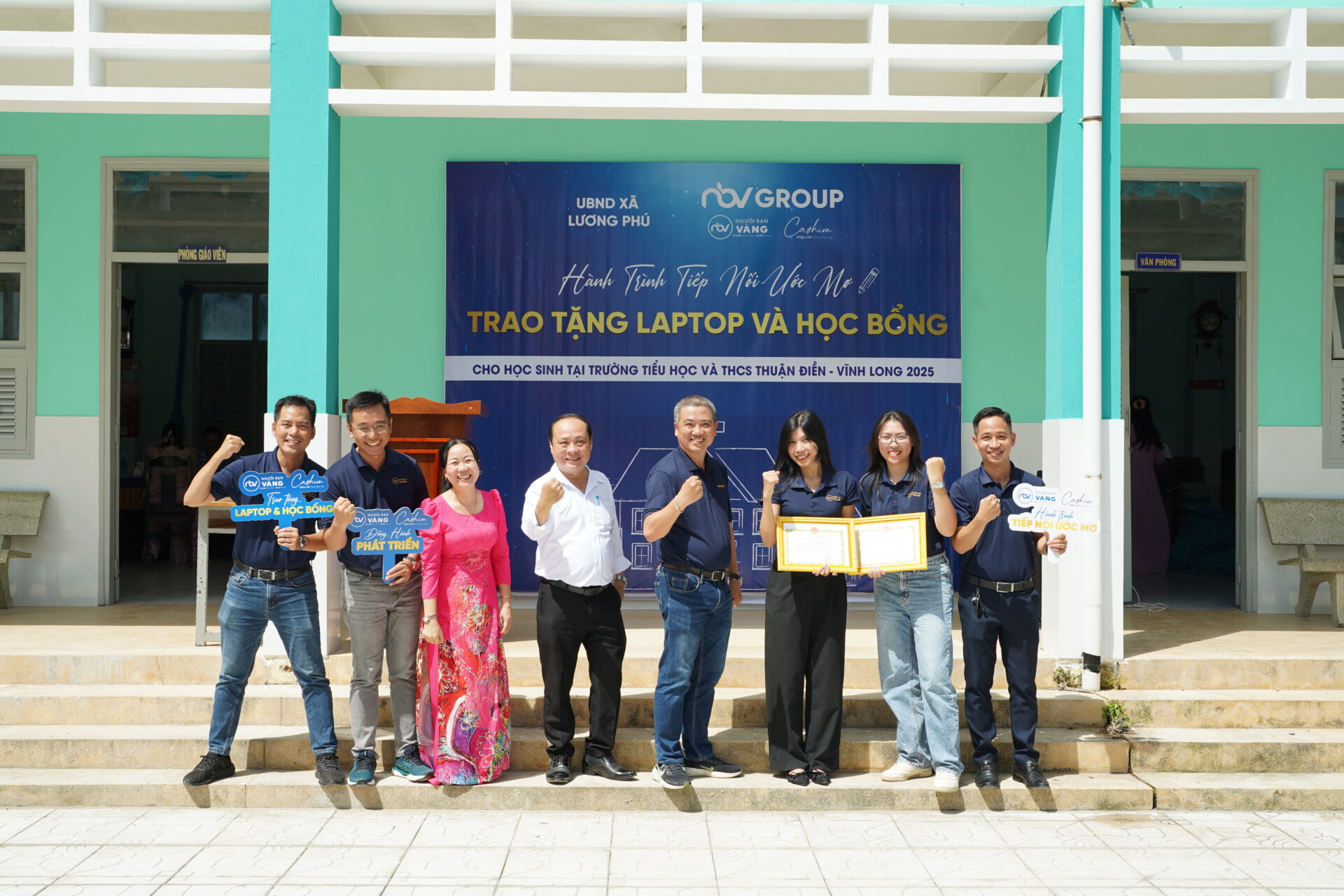Ngày 5.9.2025, tại Trường tiểu học và THCS Thuận Điền, tỉnh Vĩnh Long (tỉnh Bến Tre cũ), Dự án trao tặng 15 chiếc laptop cùng 15 suất học bổng trong Hành trình ‘Tiếp nối ước mơ’ đã được thực hiện với sự đồng hành của nhà trường và UBND xã Lương Phú, nhằm tiếp sức cho những em học sinh nhỏ có hoàn cảnh khó khăn nhưng giàu nghị lực học tập.